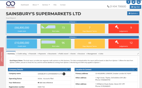 Alongside company credit reports, we offer CRM integration, Dual Reports and Business Credit Monitoring, giving you powerful tools to monitor, manage and reduce business credit risk across your customer and supplier base.
